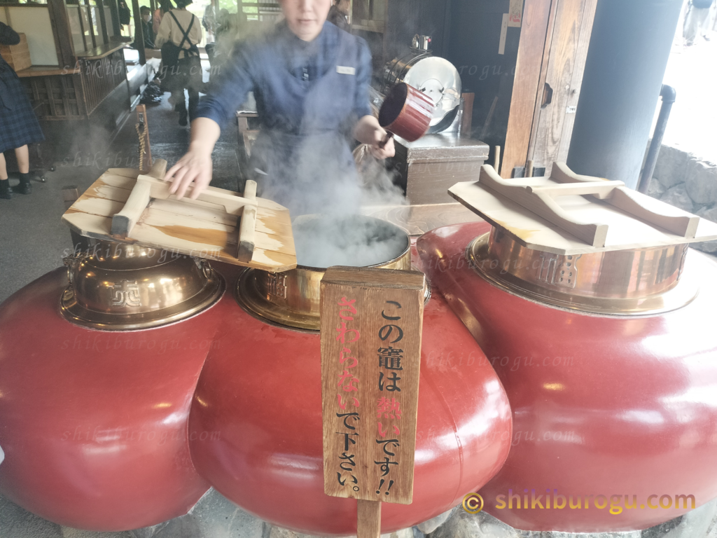 おかげ横丁にある赤福のお店。お店の前であんこを煮てるのが見れる。