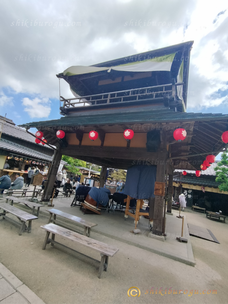 広場の真ん中に和太鼓とかお祭りの舞台みたいなのが設置されてた。ここで一日何回か演奏してくれるみたい。神恩太鼓って名前があったらしい。