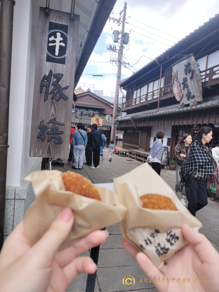 サクッ!肉汁じゅわあってなって美味しかった!ちょっと小さいかなって思ったけど、買い食いするにはちょうどいい大きさ!他にも食べたいものがありすぎるので…。