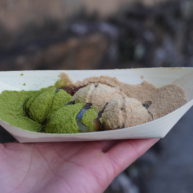 みたらしと、黒糖みつだんご。三色団子もあったけど、これに決めた!